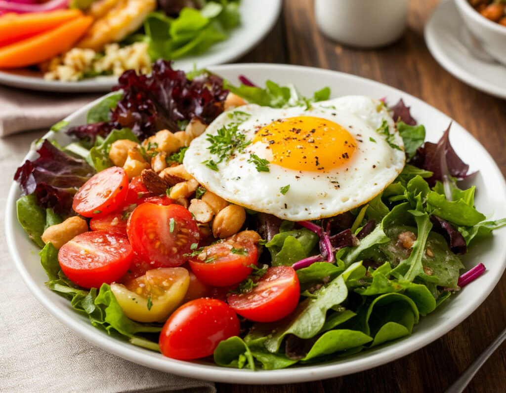 Яйца — это отличный источник белка, а авокадо добавляет полезных жиров, которые поддерживают чувство сытости. Такой салат — идеальный выбор для начала дня.